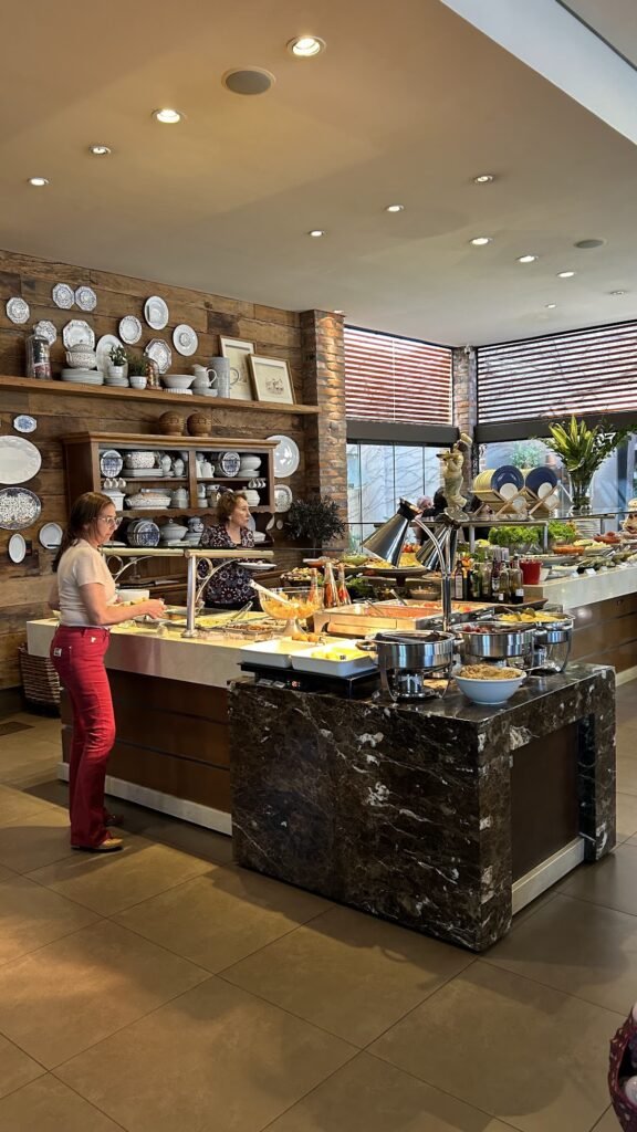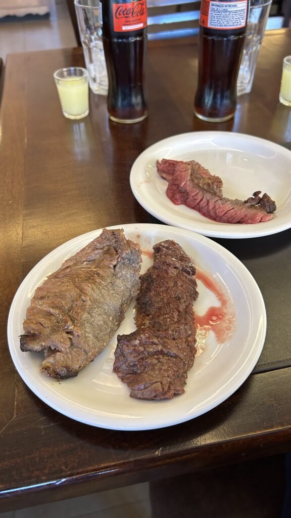 No almoço, por volta das 12h30, paramos em Campo Grande, na Churrascaria Figueira. O sistema é prático: você escolhe entre buffet com ou sem churrasco. Optamos pelo completo, com uma fitinha que permite pegar as carnes direto no balcão. O destaque ficou para o Cupim Tropical, marinado no limão, equilibrando a gordura da carne com uma acidez refrescante. Delicioso!